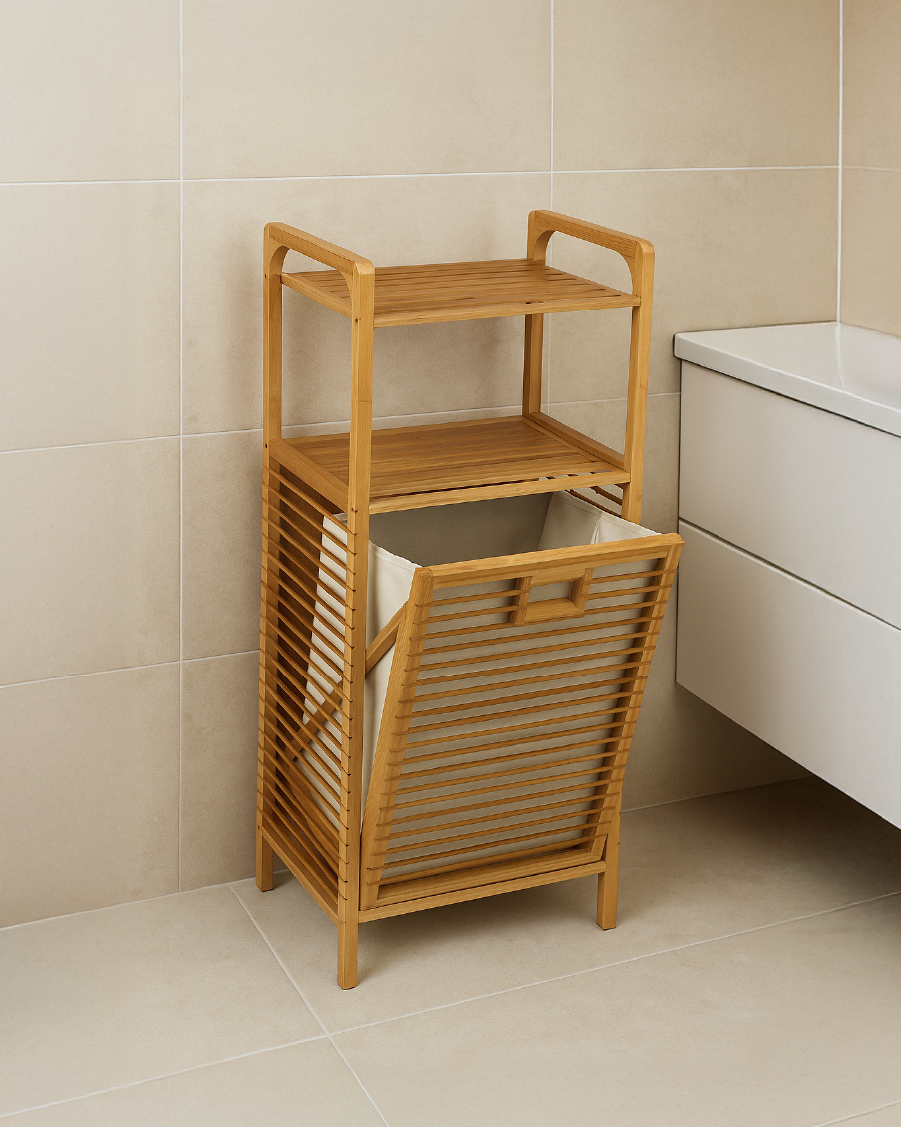 Doğal bambu çamaşır sepeti, modern ve minimalist tasarımıyla yaşam alanlarınıza hem düzen hem de şıklık katar. Dayanıklı bambu iskelet, uzun ömürlü kullanım sağlarken, kolayca çıkarılabilen bez torbası çamaşırların taşınmasını zahmetsiz hale getirir. Üst kısmındaki raf bölmeleri, deterjan, havlu veya kişisel eşyalar için ekstra depolama alanı sunar.