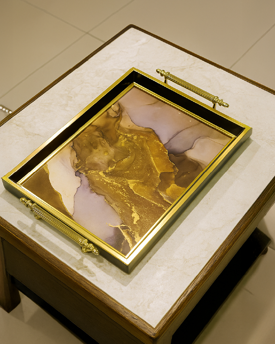 Golden Marble Desen – Dekoratif Lüks Tepsi
