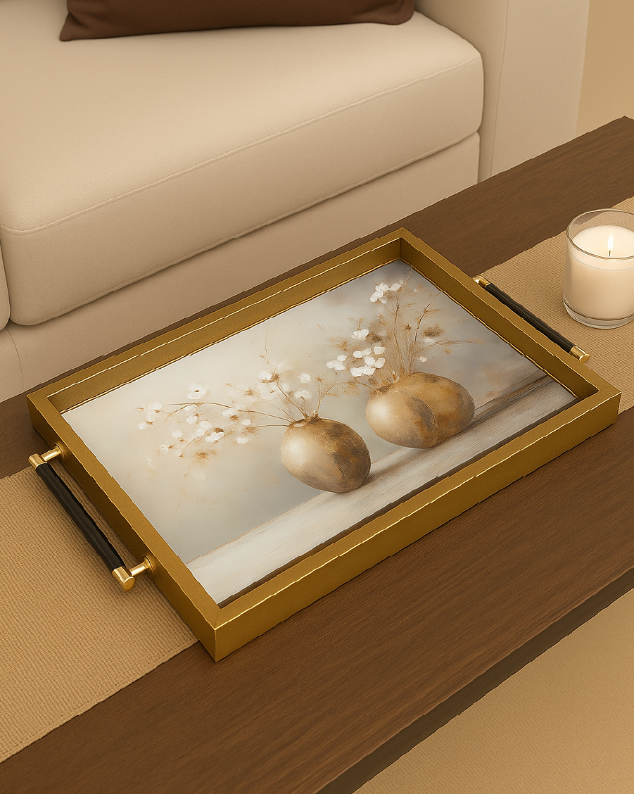 Golden Vase Desen – Dekoratif Lüks Tepsi