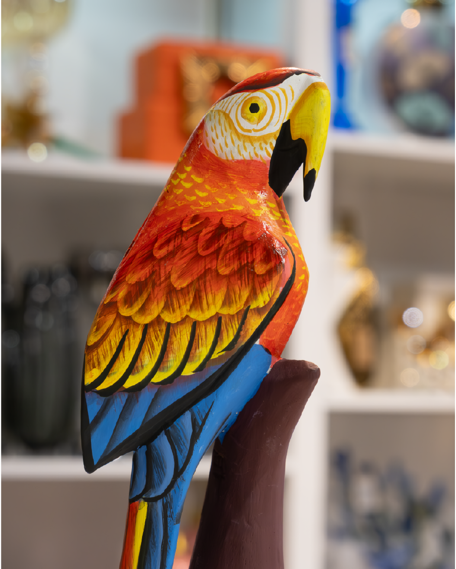 Renkli Papağan Biblosu – Dekoratif Kuş Figürü