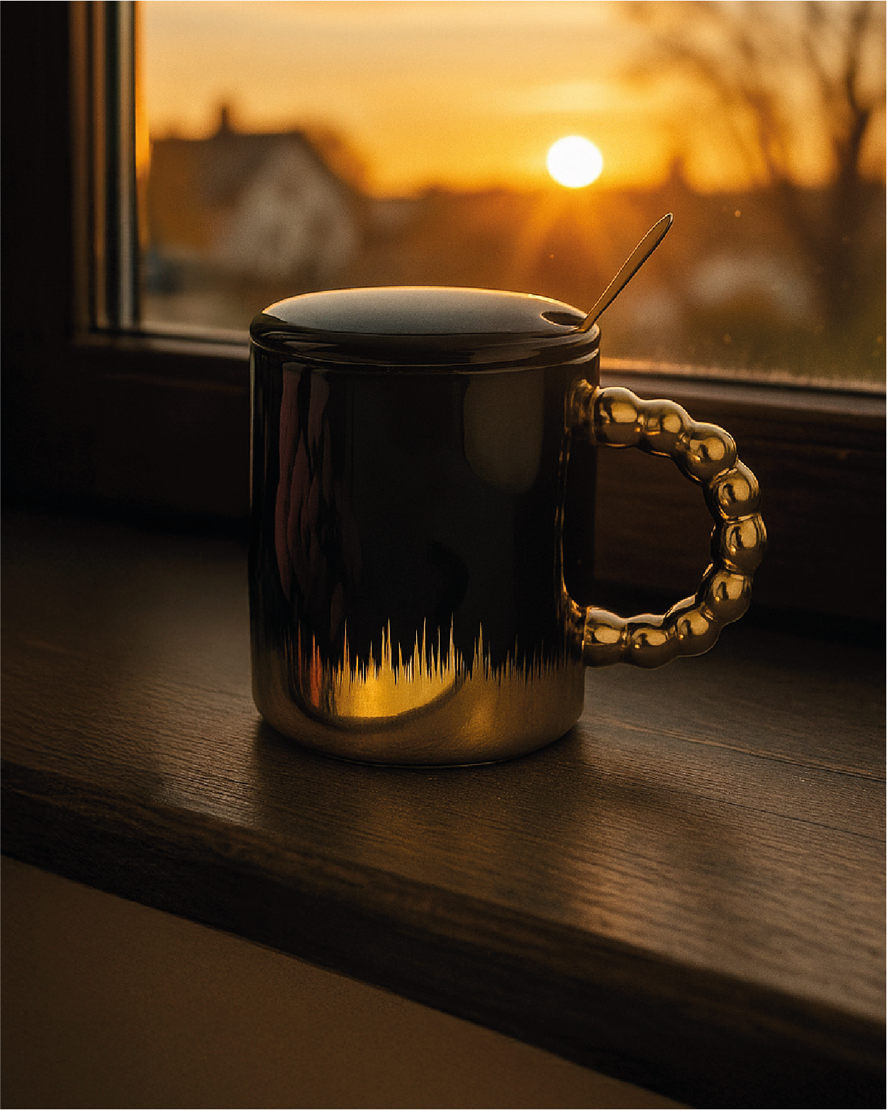 Siyahın asaleti ve altının ışıltısını bir araya getiren bu kapaklı kahve kupası, kahve molalarınıza modern bir dokunuş katar. Parlak yüzeyi ve heykelsi altın sapı sayesinde sıradan kupalardan ayrılır. Kaşıklı tasarımıyla kahvenizi karıştırmak için ayrı bir kaşık aramanıza gerek kalmaz ve kapaklı tasarımı sayesinde ısıyı daha uzun süre korur. Evde, ofiste veya hediye olarak mükemmel bir seçimdir.